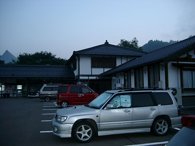 | 道の駅白鳥 今回の宿泊地.昔の建物のような雰囲気です.AM5:16撮影. ちなみに写ってる車は知らない人たち. |
