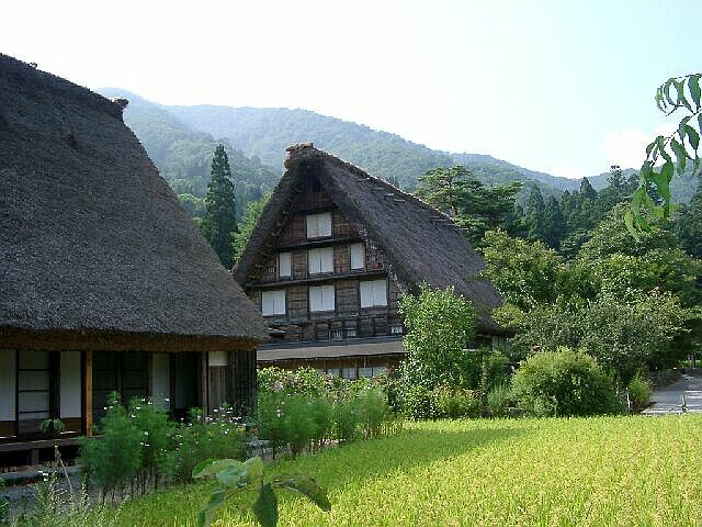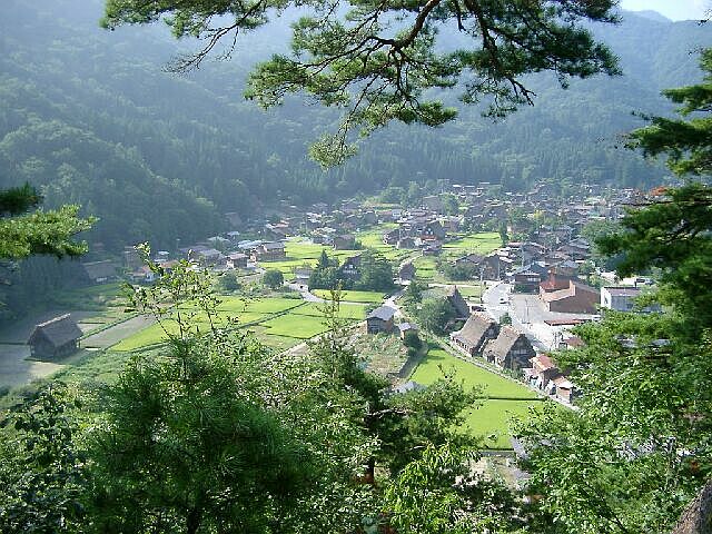 | 白川郷を城山公園から見下ろす. 合掌造り集落. このあたり一帯が世界遺産. |