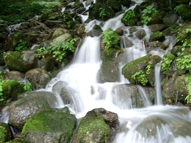| そこにあった小さな滝2 フラッシュ無し&露出時間1/2sec ややぶれてしまったのが残念. やっぱりセルフタイマー必須かな. |